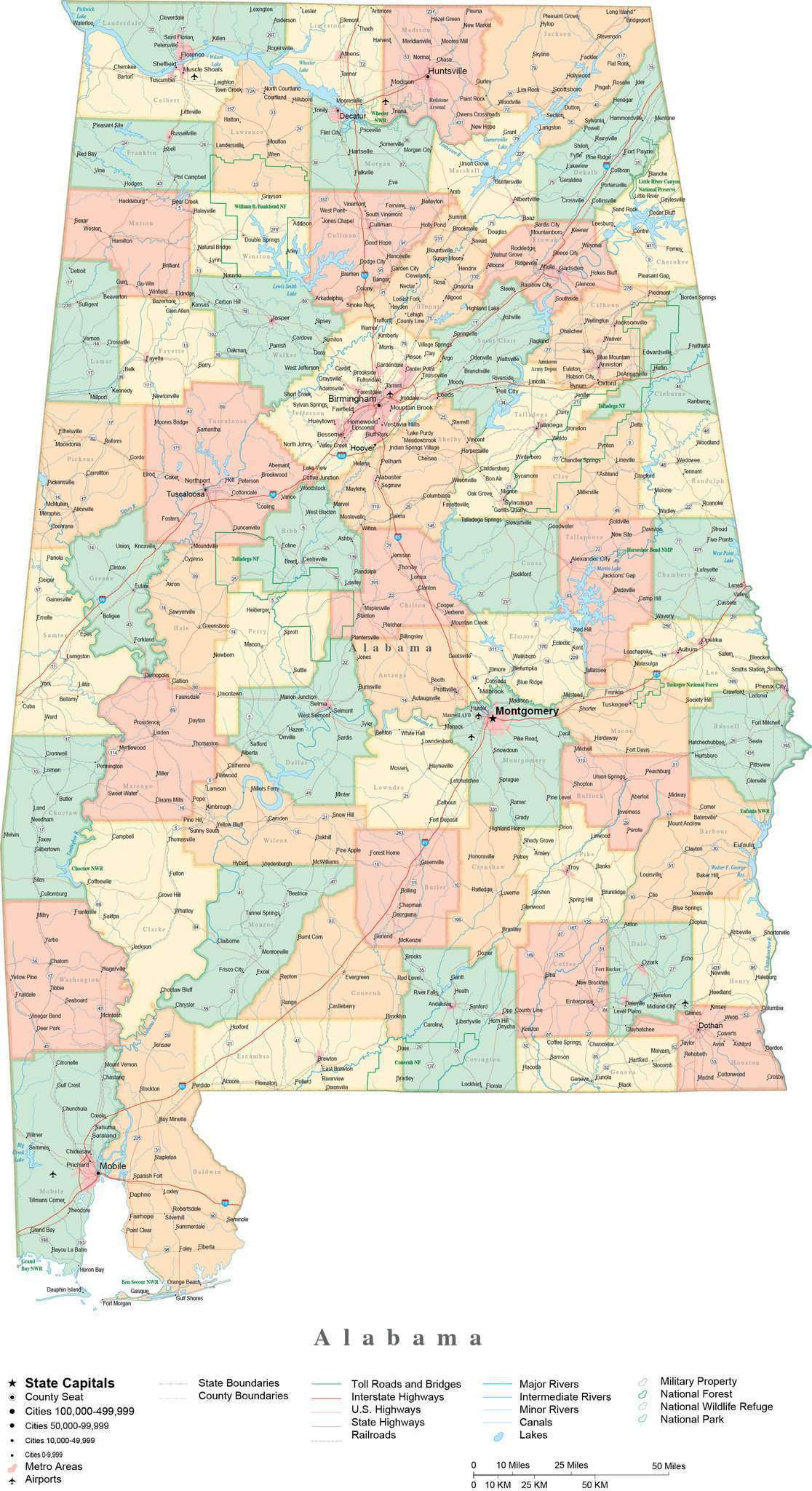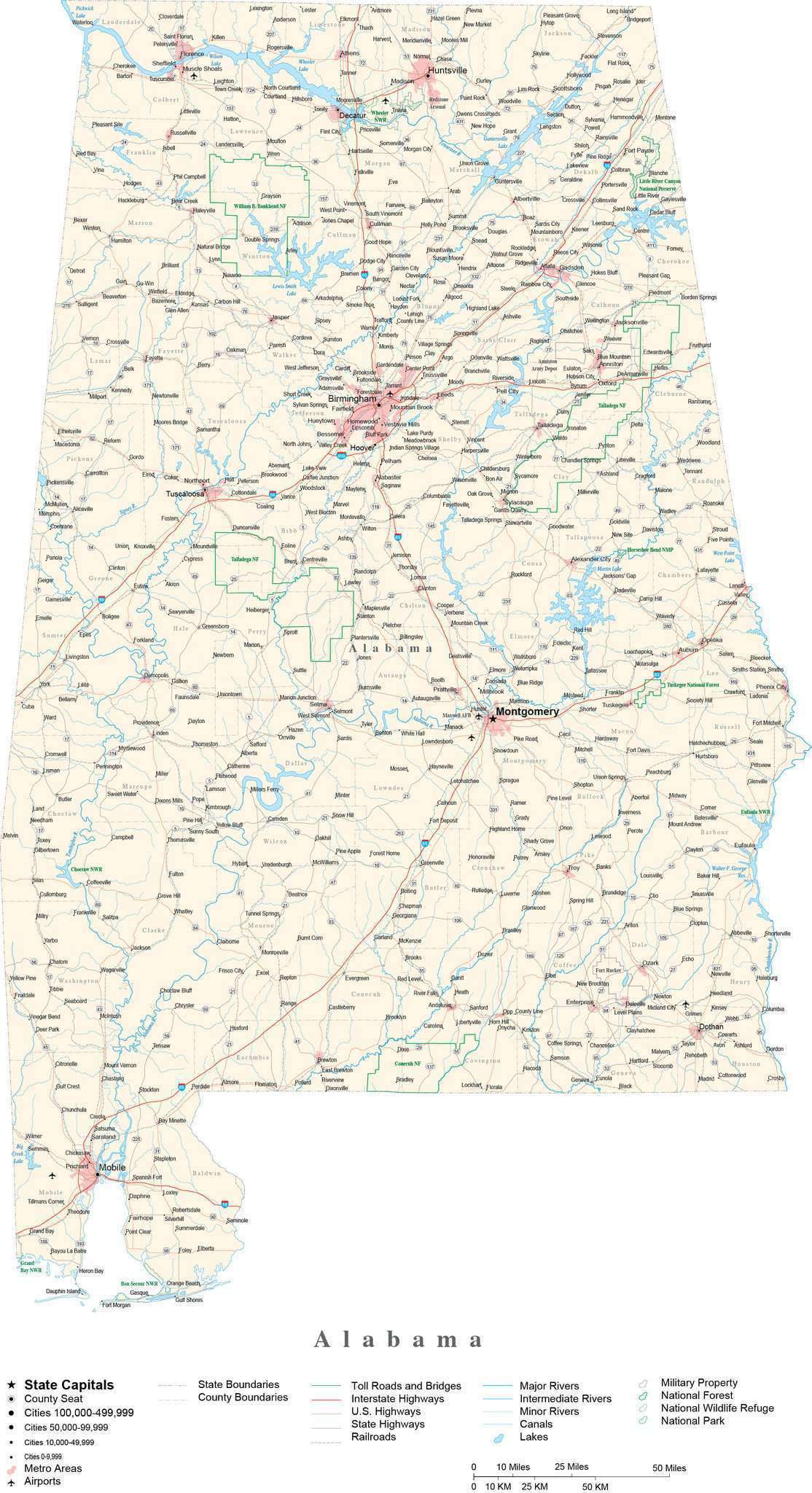 Map of Alabama with cities and towns