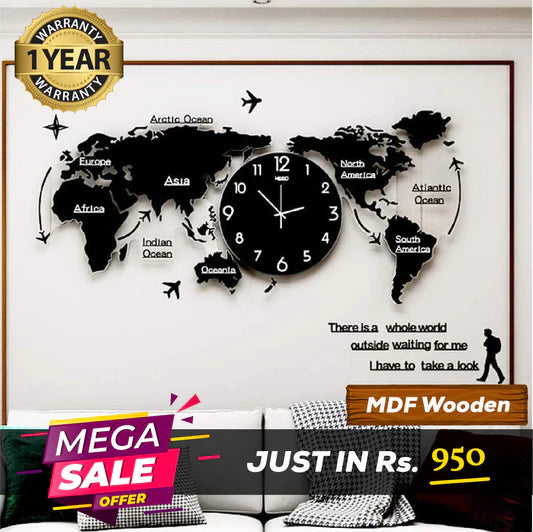 World Map Wall Clock: Discover Time | PyariWalls.pk โ Pyari Walls
